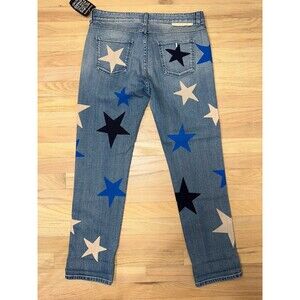 NWT Stella Mccartney Multi Color Star Print High Rise Blue Jeans Women Sz 30x28"