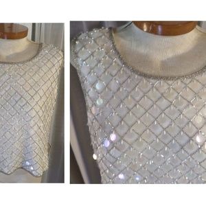 NWT Stenay XL Silk White Bead Sequin Top Sleeveles