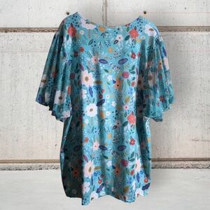 NWT Sterling Kreek Floral Teal Women's Top Size XL