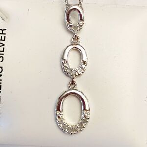 NWT Sterling Silver 1/10 CTW Genuine Diamond Oval Drop Necklace — Size 18”