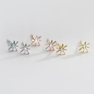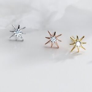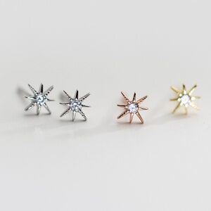 NWT Sterling Silver Star Sun Earring | Pretty Minimal Small Dainty Stone Classic