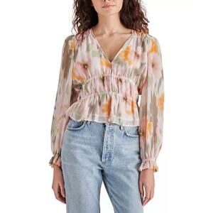 NWT Steve Madden Ardenne Faded Floral Chiffon Blouse Large Boho Romantic Sheer