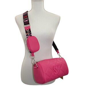 NWT Steve Madden BGERRI Pink Quilted Barrel Crossbody Bag Logo Strap + Pouch
