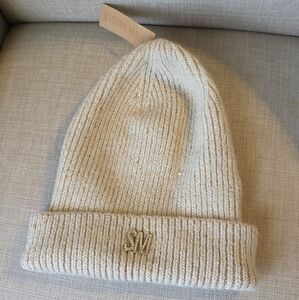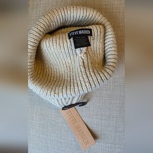 NWT Steve Madden Beige Knit Beanie with Gold Accent