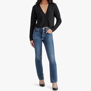 NWT Steve Madden Black & Silver Metallic Sequin Knit Cardigan Sweater – Size XS