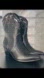 Stylish western black boots with bold white snakeskin accents.