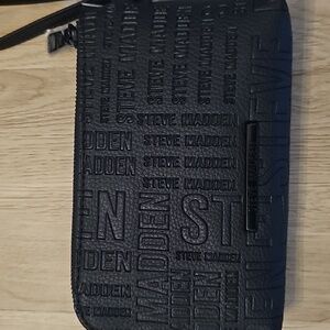 NWT Steve Madden Btrell Double Zip Monogram Black Wristlet/Clutch