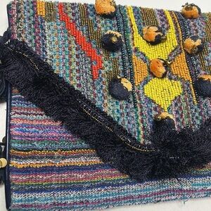 NWT Steve Madden Desert Luce Foldover Colorful Boho Large Knit Pennie Clutch