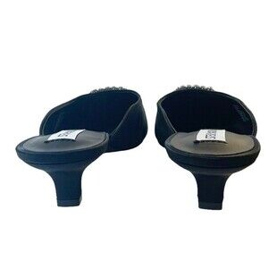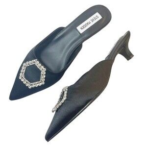 NWT Steve Madden Kees Black Satin Rhinestone Buckle Kitten Heel Mule Size 8.5