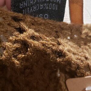 New with Tags. Steve Madden. Knit cape. It does have arm holes. One size fits all. Fringe at bottom. 38 inches long with fringe. 100% acrylic. Hand wash. Brown/Cocoa. Tag says that the color is TAN.