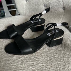NWT Steve Madden NORA Block Heels Sandals Black Leather. Size 9.