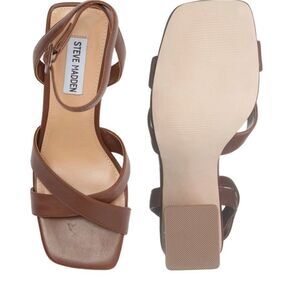 NWT Steve Madden “Renley” block heel ankle strap sandal in Brown leather