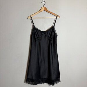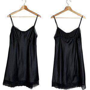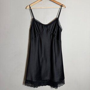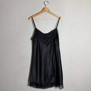 NWT Steve Madden Veera Lace Trim Slipdress Mini Dress Women's Medium Black Satin