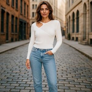 Chic cream knit sweater. Soft texture and stylish design.