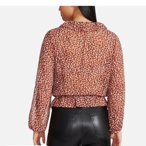 NWT Steve Madden Womens Printed Cascade Ruffle Blouse, Medium
