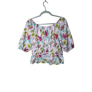 NWT Steve Madden Women's Size XL Pink Floral Puff Sleeve Babydoll Keyhole Shirt
