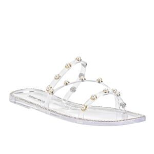 NWT Steve Madden Women's Studded Pearl Embellished Slide-On Flat Sandals