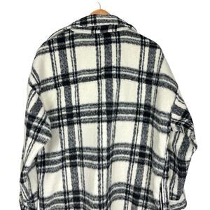 NWT Steve Madden Wool Blend Cream Plaid Button-Up Shacket Size Large