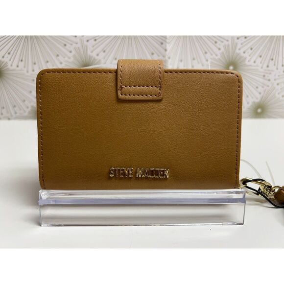 NWT Steve Madden tan bifold wallet/wristlet with detachable card case and plenty of slip pockets for credit/bank cards and ID. Wrist strap is detachable for ease of use. Snap closure. Vegan leather. Compact and stylish for everyday use.