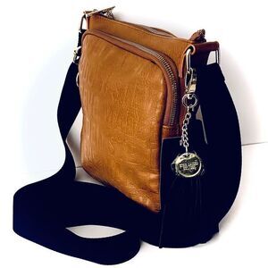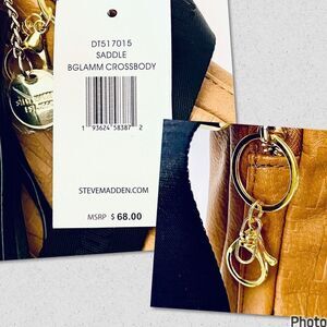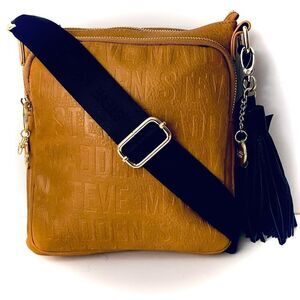 Removable STEVE MADDEN signature gold tone medal and Tassel, Signature Adjustable Signature Strap, Lobster Keyholder in the zipper for you to hang anything, Tan (Brown, Cognac, Camel) Crossbody Bag with so many compartments!!!