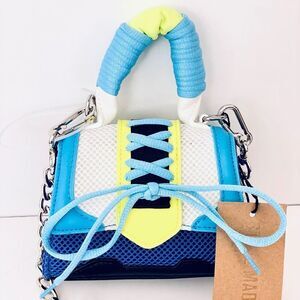 Turquoise Blue, Navy Blue, Cobalt Blue pu Leather & fabric, Silver hardware & chain adorable mini Bag!!!!