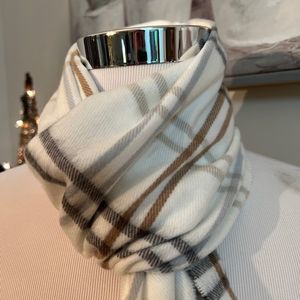 NWT Steve Madden Mid Weight Cozy Muffler Scarf with Fringe Ivory Gray Beige