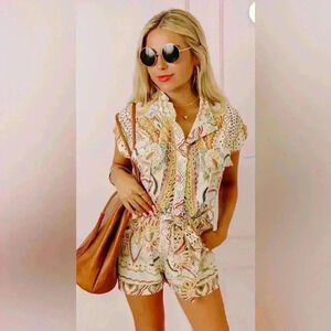 NWT Stile_Perlei linen/cotton blend, cream paisley patterned romper; size S