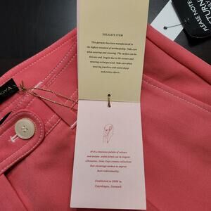 New with tags Stine Goya Bob Solid Tailoring Pants in Rose. Tailored style pant with a slightly flared silhouette cut just before the ankle. White contrast stitching detail.