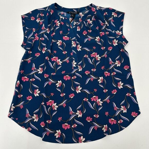 NWT Stitch Fix 41 Hawthorn Floral Pleated V Neck Blouse WGW10479 Blue