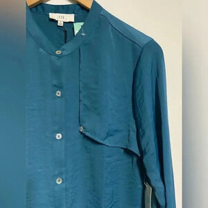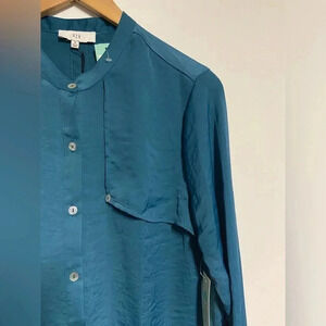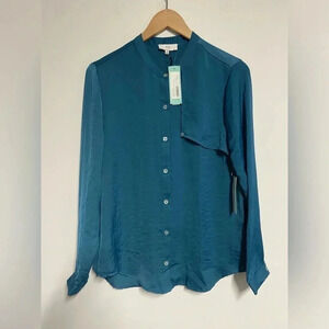 NWT Stitch Fix NSR Teal Blue Button Front Blouse Shirt Sz Small Business Office