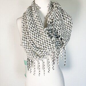 NWT Stitch Fix Scarf Octavia Beau Fringe Infinity gray white open knit