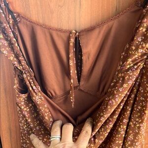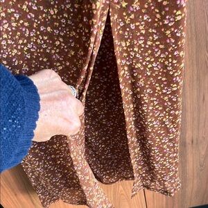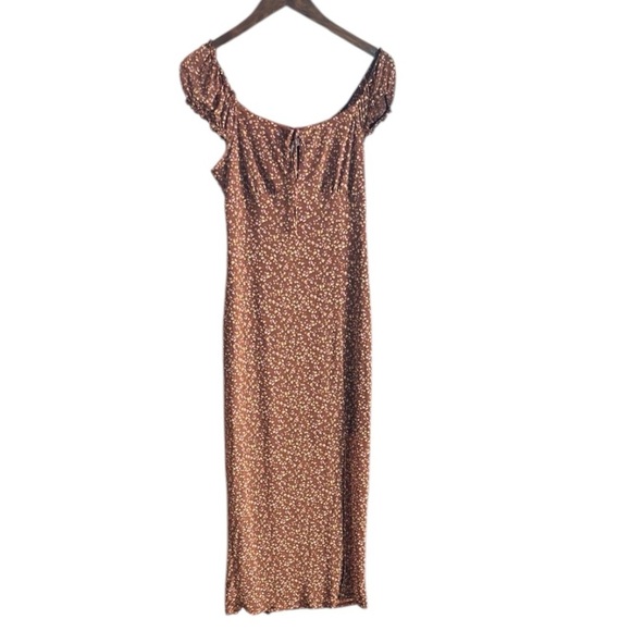 NWT Stitch Pine Floral Midi Dress Medium Brown Milkmaid Peasant Stretch Prairie