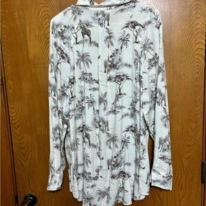 NWT Stitch by Chenault African Animals Print Button Up Long Sleeve Shirt Tunic L and XXL
