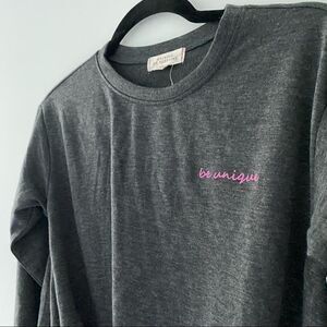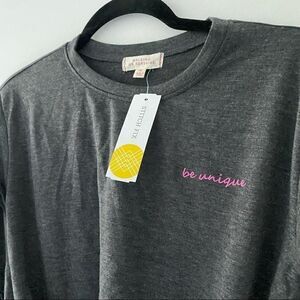 Stitch Fix Grey and Pink Walking On Sunshine Be Unique Embroidered Twist Front Long Sleeve Shirt Size XL