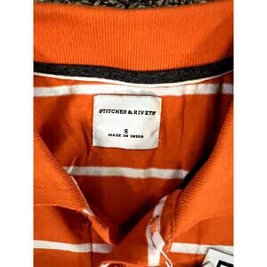NWT Stitches & Rivets Mens Polo Style Shirt. Size Medium. Orange/Grey/White Stripe