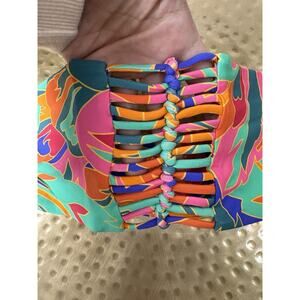 NWT Stone Fox Swim Inez Bikini Lattice Bandeau Top Stained Glass XS Floral Boho