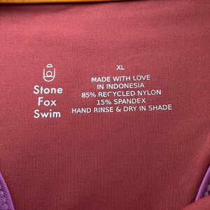 This is brand new with tags Stone Fox Swim Moon bikini bottom! The Moon is a thong bottom cut with minimal coverage designed to sit high on the hips to maximize every bit of the sun's rays while accentuating the natural curve of the body. Made from 84% recycled poly and 16% spandex, buttery to the touch, they will have you feeling cheeky! *Please note that stock photo is for fit & style reference only, this item color is Color Block Resort Combo (red, pink & orange) and differs from stock photos. See pictures for size chart, print and fit.
