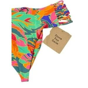 Revolves Stone Fox Swim Simone Bikini Cheeky Bottom Stained Glass Print S MultiColors Strappy High waisted Macrame details on side / hip Cheeky back