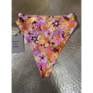 NWT Stone Fox Swim Sumatra Bikini Bottom Pink Floral Retro Pop XS High Rise
