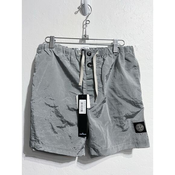 NWT Stone Island Shorts Mens Medium Gray Swim Trunks Logo Patch