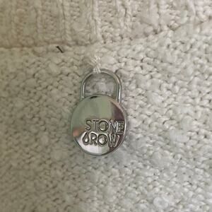 Stone Row Sweater Dress - Cream and white striped, long sleeve, super soft nubby knit, back logo, crew neck.