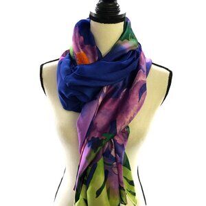 NWT Story Of Shanghai Silky Scarf Purple Floral Womens 76'' L X 39'' W