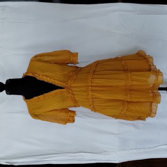 NWT Story On mustard mini dress w V neckline, ruffle SO CUTE! Sz S/M