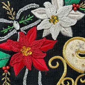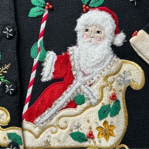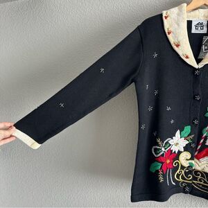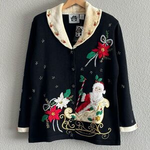 NWT Storybook Knits Christmas Greetings Sweater Cardigan Santa Poinsettia Medium