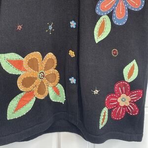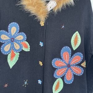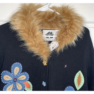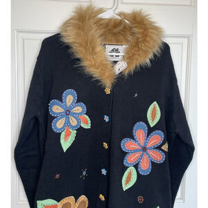 NWT Storybook Knits Embroidered Flowers Faux Fur Collar Cardigan Sz 1X Beaded