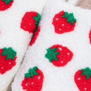 NWT Strawberry Pattern Fuzzy Slippers Women's Size: 8-9