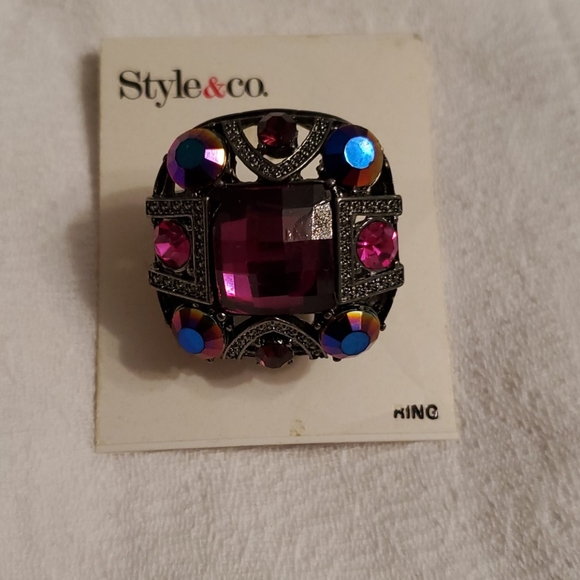 NWT! Multi stone stretch Chunky ring. Beautiful jewelry tone stones.