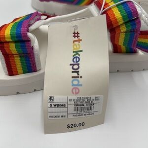 NWT Striped Rainbow Adjustable Strap White Sandals - Size W8/M6