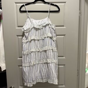 Embrace summer with this chic striped ruffle sundress. Perfect for casual outings, it features a stylish blue and white pattern. New with tags, never worn!