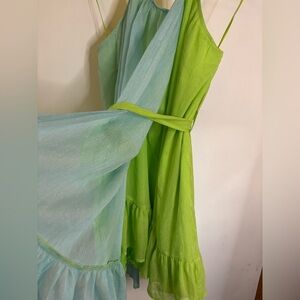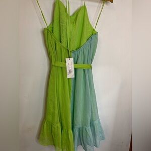 NWT Strut and Bolt Los Angeles lime green and aqua blue chiffon ruffle tiered mini sundress. Event, wedding guest, party, night out. Feminine and flirty. (T)